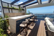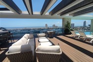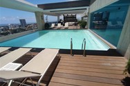 Piscina infinity en el nivel 15, con una impresionante vista al mar y a toda la ciudad