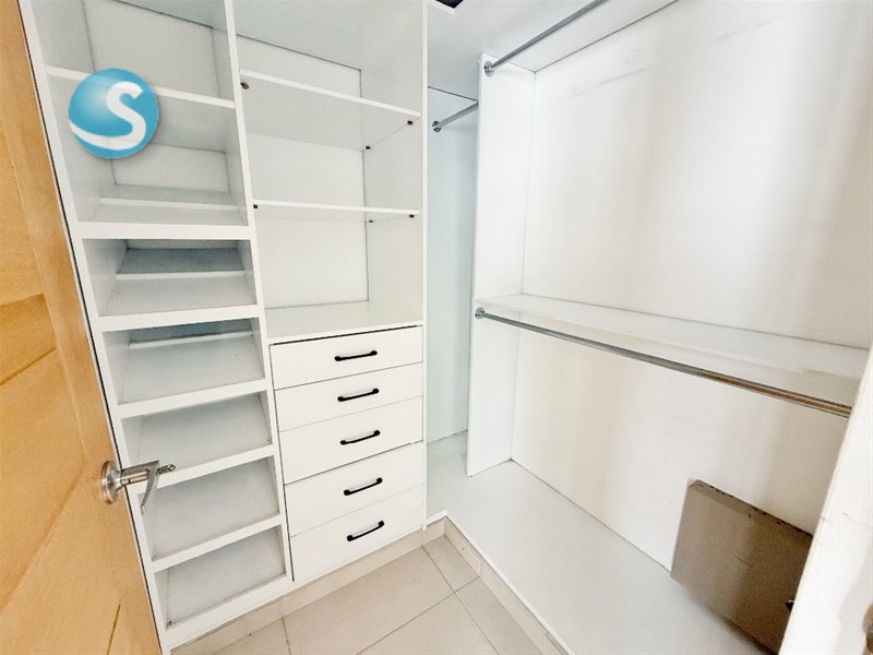 2 habitaciones, cada una con baño y walk-in closet (Principal con Closet Modular + Aire acondicionado)