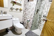 The building features a spacious, air-conditioned and elegantly furnished lobby, two elevators, full power generator, and a complete security system. Smart living is enhanced with keyless smart access, private lockers for each apartment, intercom system, shared gas service, and electric gate access.