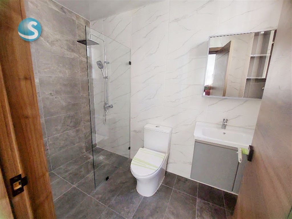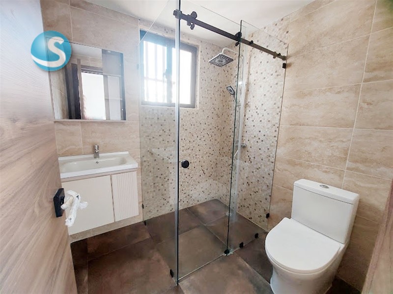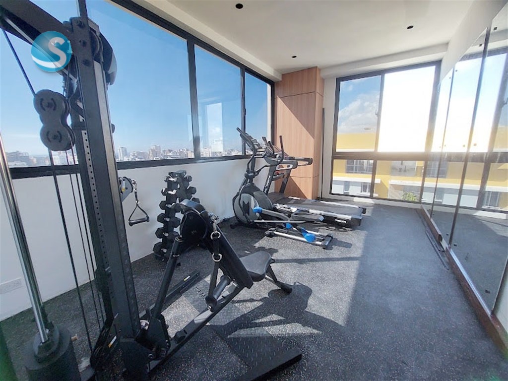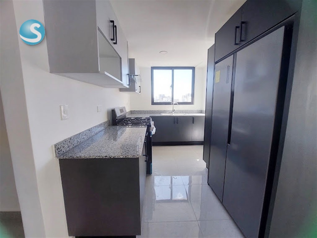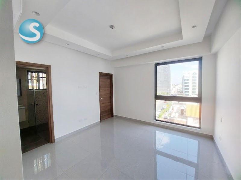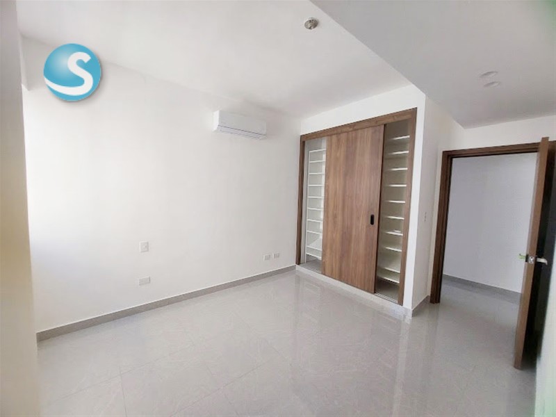 Ubicado en el 5to. piso, cuenta con balcón, sala, comedor, cocina equipada con electrodomésticos nuevos de primera, aires en las dos habitaciones, cada una con su baño y la principal con walk-in closet. Tiene también su área de lavado con lavadora-secadora, cuarto de servicio y dos parqueos techados lineales. Terminación de primera con techos en yeso con luces empotradas en sala-comedor y habitaciones.