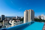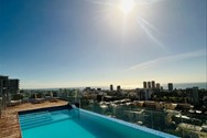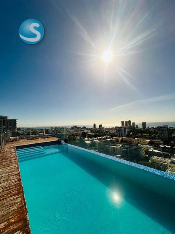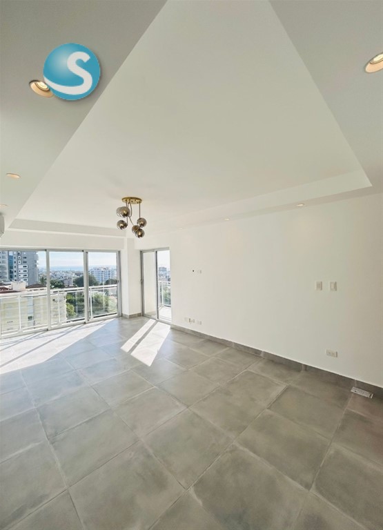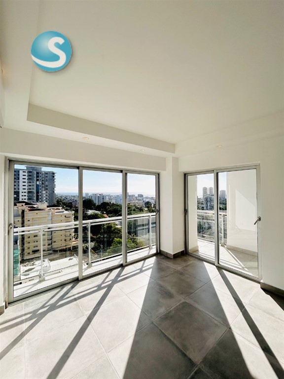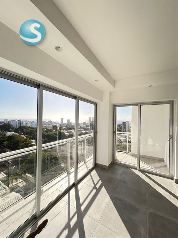 •Sala, balcón y baconcete tipo L con puertas en cristal y ventanales con vistas al mar y la ciudad