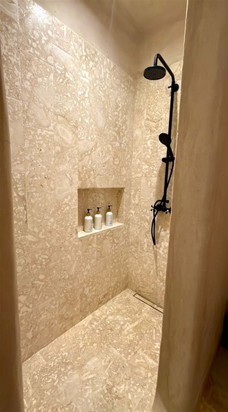 Habitación principal con walk-in closet y ducha exterior