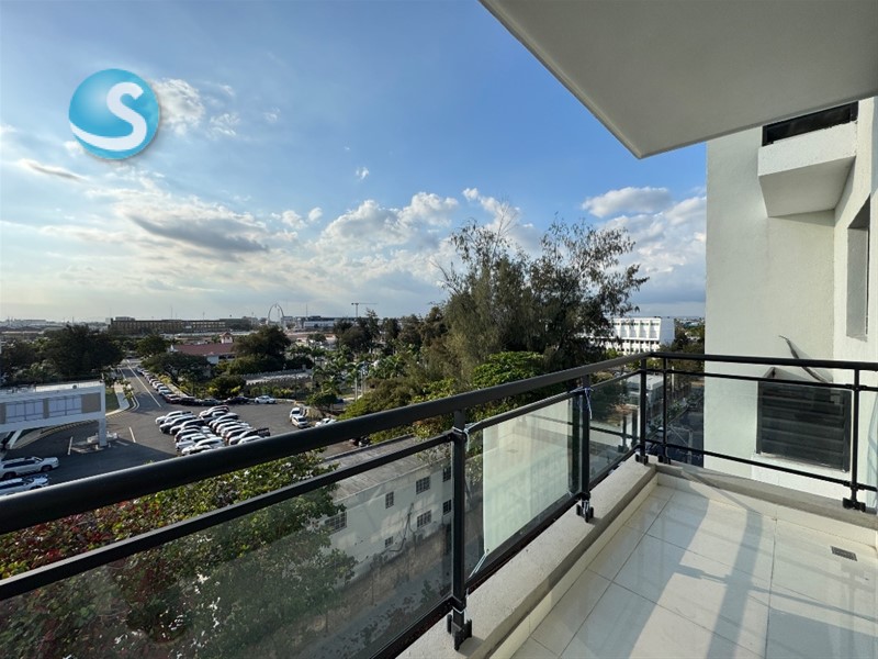 Ubicado en un sexto nivel con ascensor, el apartamento cuenta con dos habitaciones, cada una con su baño privado y walk-in closet, brindando mayor privacidad y confort. Además, dispone de medio baño de visitas, sala y comedor con buena distribución, y un balcón con vista despejada, perfecto para disfrutar de ventilación natural y momentos de descanso.