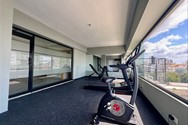 Gimnasio climatizado con hermosa vista al mar, baño y ducha.