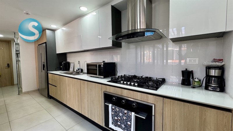 Elegante apartamento ubicado en primer nivel, ideal para quienes buscan confort, privacidad y excelente ubicación. Se vende totalmente amueblado, con electrodomésticos incluidos, listo para mudarse o invertir. Sus espacios han sido diseñados para disfrutar la luz natural y la vida social, complementados con una terraza privada y jacuzzi propio, perfectos para el descanso.