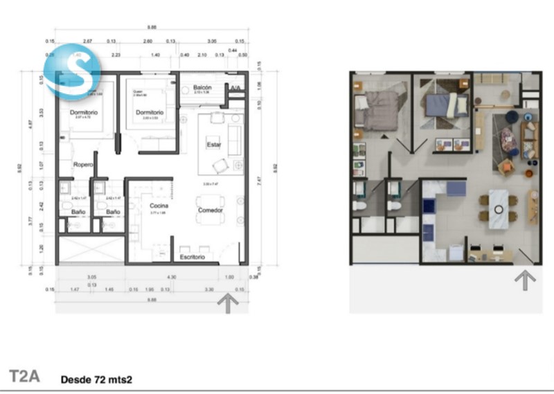 2 Habitaciones, 74.96 Mts2, US$140,286.00