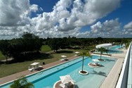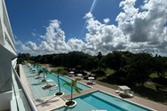 • Balcón tipo terraza con vista a la piscina y al campo de golf
