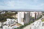 Dos tipologías de torres con apartamentos de 88 - 110 m2 de 3 y 2 habitaciones, con seis unidades por nivel, accesibles desde amplios núcleos y circulaciones dotadas de áreas de servicios y patios en 1er nivel de cada plataforma.