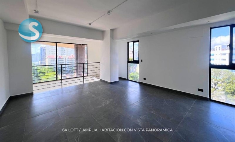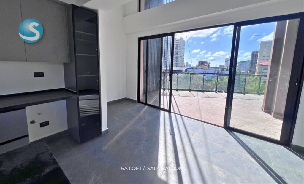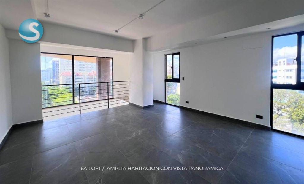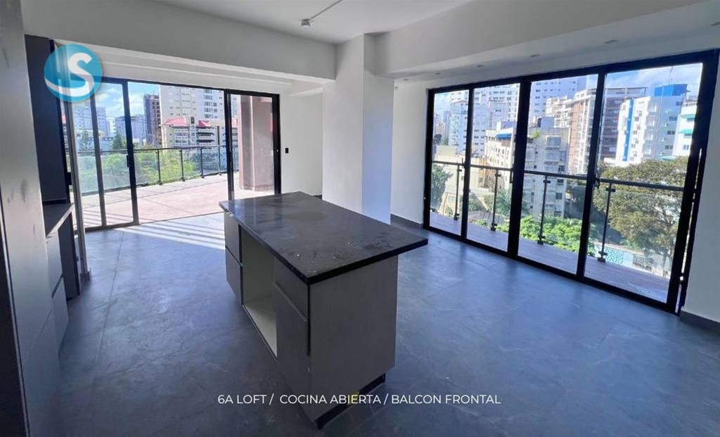 Apartamento de 1 habitacion tipo loft + Estudio , en el centro de la ciudad con una vista de 180 grados al mar a pocas esquinas de las Ave. 27 de Febrero.