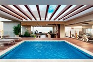 Piscina con vista a la ciudad y al mar