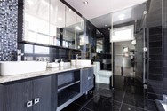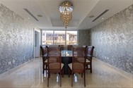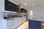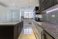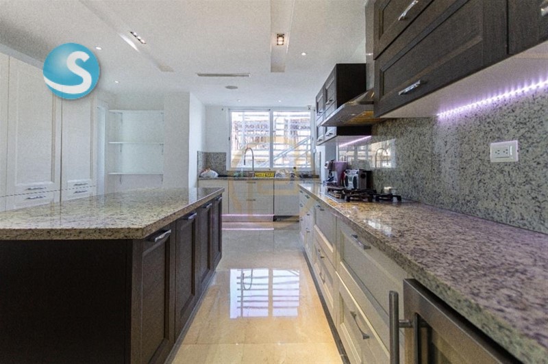 Electrodomésticos empotrados: 2 neveras y 1 freezer empotradas en closets, estufa empotrada con campana extractor tope de granito piso , lavaplatos, amplios compartimentos para lozas y despensa, neveras de vino empotradas.