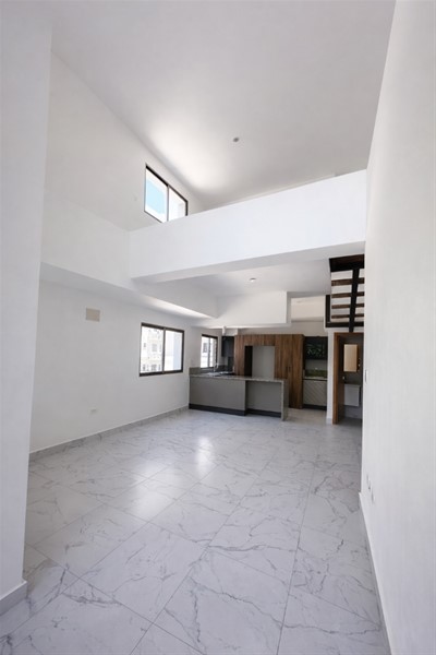 Apartamento tipo loft en venta a estrenar, con diseño moderno y espacios de doble altura, ubicado en torre de baja densidad con áreas sociales que poseen vista al mar.