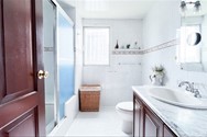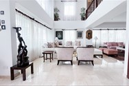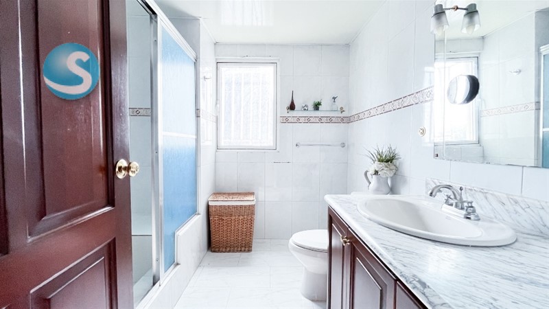 5 baños y 2 medios baños, con topes en mármol y aparatos sanitarios de lujo.