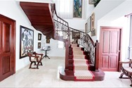 Escalera interna en caoba con detalles en hierro ornamental.