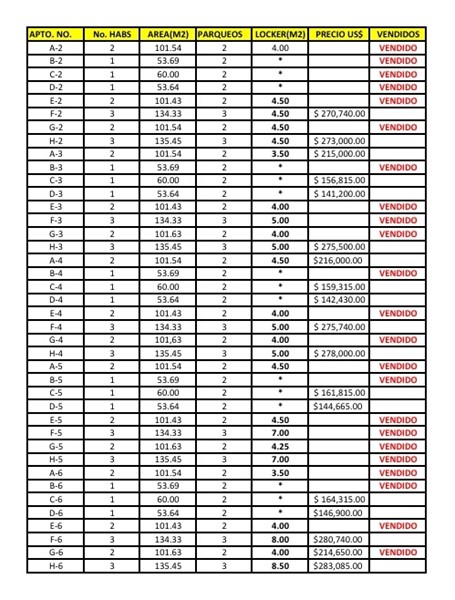 APTOS. DE 1, 2 Y 3 HABITACIONES, CON 2 Y 3 PARQUEOS, ALGUNOS APTOS. CON LOCKER, DESDE 53.64mts. A 135.45mts. - US$141,200.00 A US$283,240.00