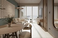 101 m² | 2 bedrooms: direct ocean view, fluid modern distribution ideal for entertaining, 2 full baths + guest half-bath, plus service room with private bath.
