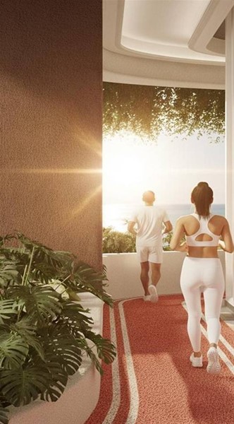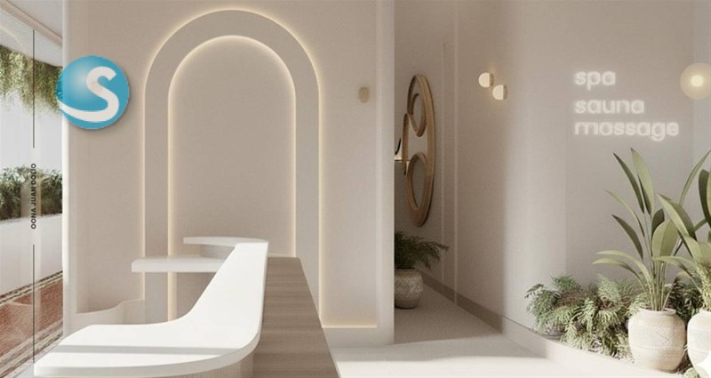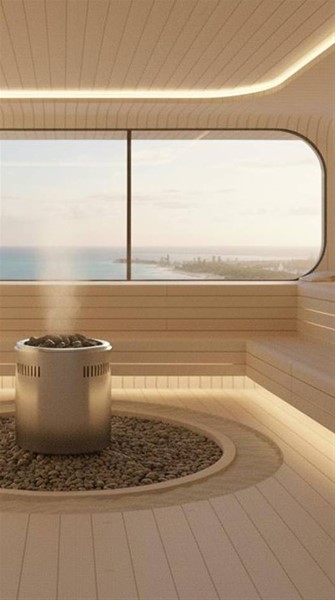 Gimnasio y zona de bienestar con ambiente de spa/sauna (según propuesta visual del proyecto)