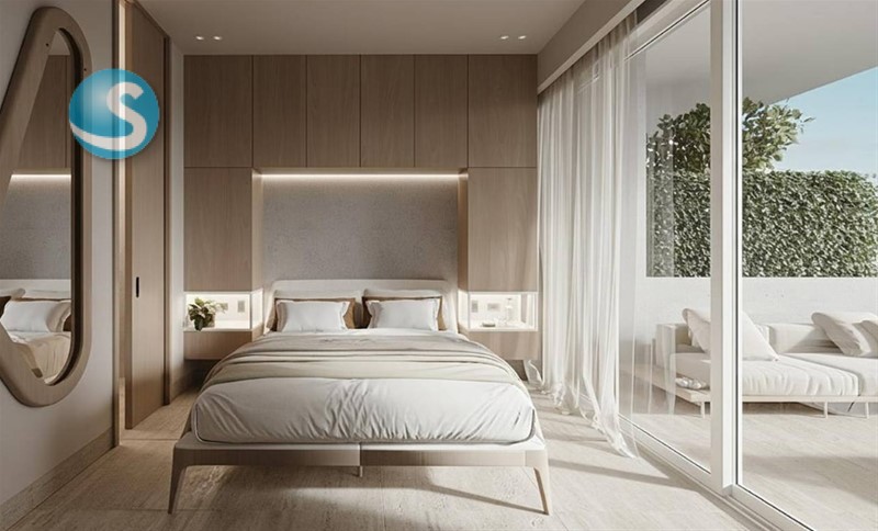 103 m² | 2 habitaciones (opción lock-off): baño completo en cada habitación y sistema lock-off para rentar una parte de forma independiente; vistas agradables hacia jardín y playa lateral, con cuarto de servicio.