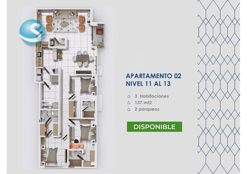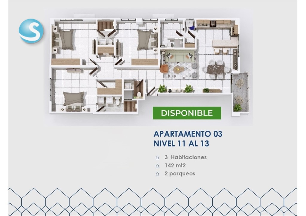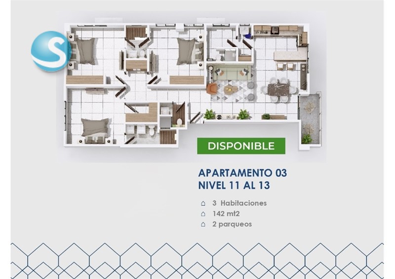 • Apartamentos de 3 habitaciones 127M2, 137M2, 142M2
