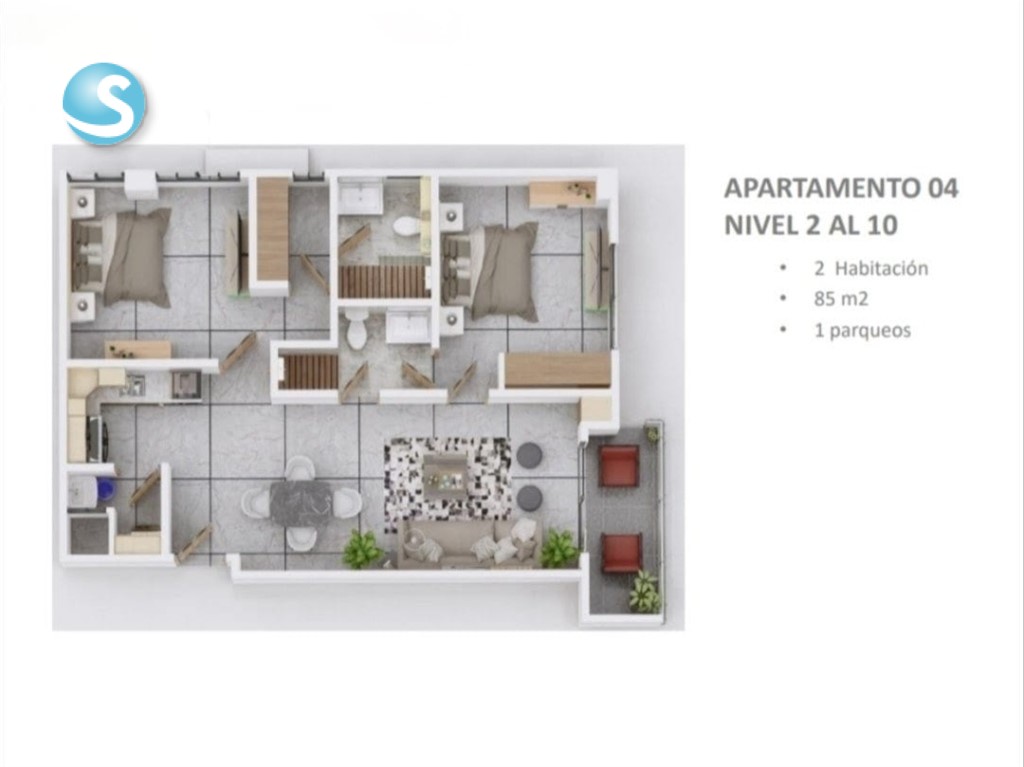 • Apartamentos de 2 habitaciones 85M2.