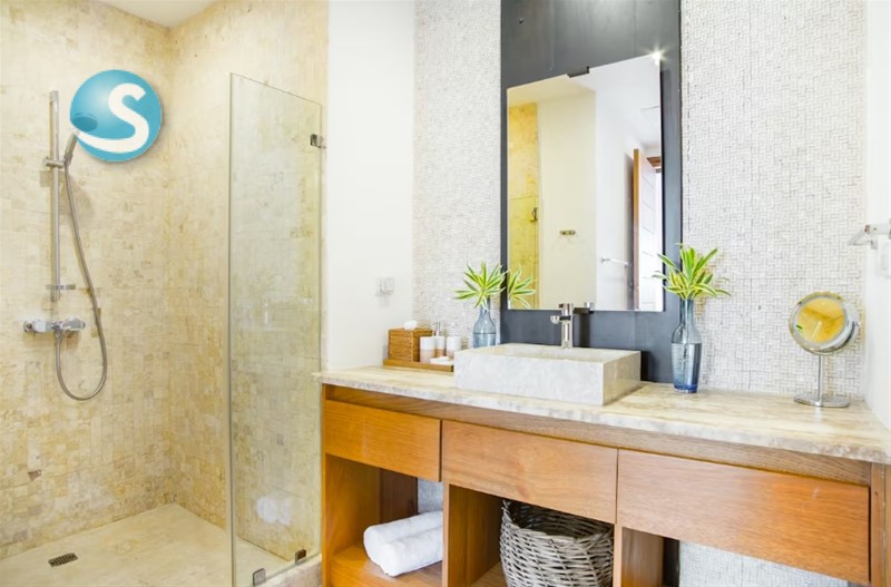 1 baño completo + 1 medio baño para visitas