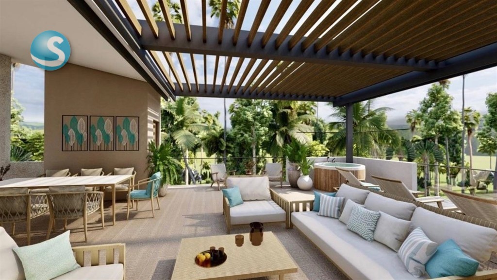 TE INCLUIMOS LINEA BLANCA FULL Aires Acondicionados en habitacion y sala Refrigerador Estufa Empotrada Horno-Microondas Extrarctor de grasa Lavadora-Secadora Jacuzzi para 4 personas en todos los balcones tipo terraza FORMA DE PAGO FECHA DE ENTREGA MAYO 2027 RESERVA CON US2,000 A la firma: