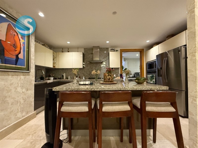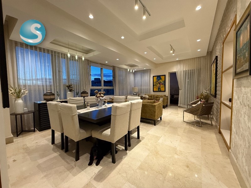 Terminación del Apartamento: puertas en madera preciosa, 2 cocinas (la fría importada italiana), calentador de gas, techos en sheetrock, pisos en mármol, habitaciones con walk-in closets y baños revestidos en mármol, malla protectora en todo el apartamento, facilidad de uso de locker. Cuenta con Aire Acondicionado Central en áreas Sociales y Habitación Principal, Automatización de luces, y sonido, videocámaras en todas las áreas y distribución de data. También la automatización incluye música en el Baño de la Habitación Principal. CON 280.93 m2.