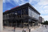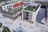 Commercial area with shops and supermarket
