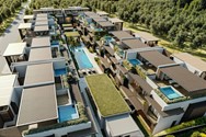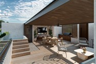 The community features 40 two-bedroom apartments across two-level buildings. The ground-floor units stand out with a major upgrade: a private 19.17 m² patio with a jacuzzi and pergola included, perfect for relaxing or hosting outdoors. Second-floor penthouse-style units include a terrace and picuzzi (subject to availability).