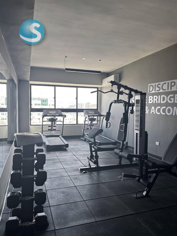 Te Presento esta Súper Torre recién construida en una de las mejores zonas de la ciudad de Santo Domingo, con áreas verdes y parques a pocos minutos, En el Renacimiento, este apartamento cuenta con una Habitación y además cuenta con Área Social en el último piso con Piscina y Gimnasio.