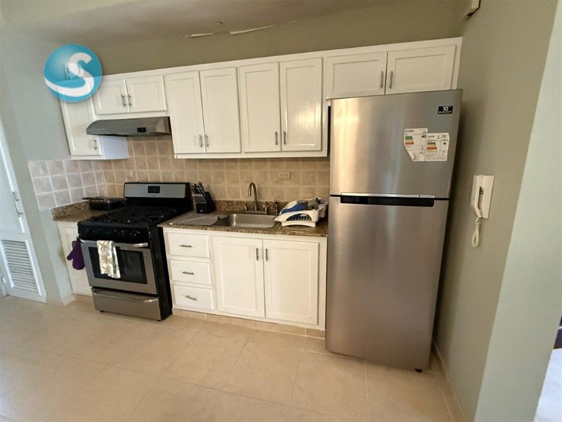 La sala y el comedor se presentan en un ambiente abierto, bien iluminado y amueblado en tonos neutros que aportan una sensación de calma y orden. La cocina es práctica, está completamente equipada y se encuentra en excelente estado. Las habitaciones son cómodas, bien ventiladas y listas para ocupación inmediata.