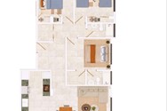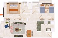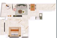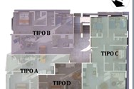 Tipo estudio, una, dos y tres habitaciones. Cuatro modelos todos bien distribuidos.