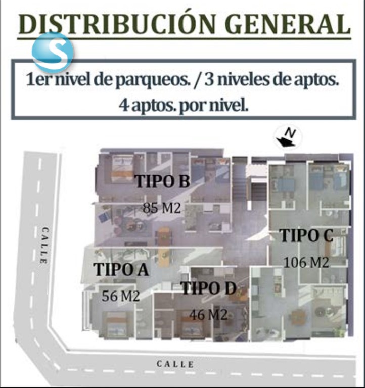 • 1er. nivel parqueos y 3 niveles de apartamentos