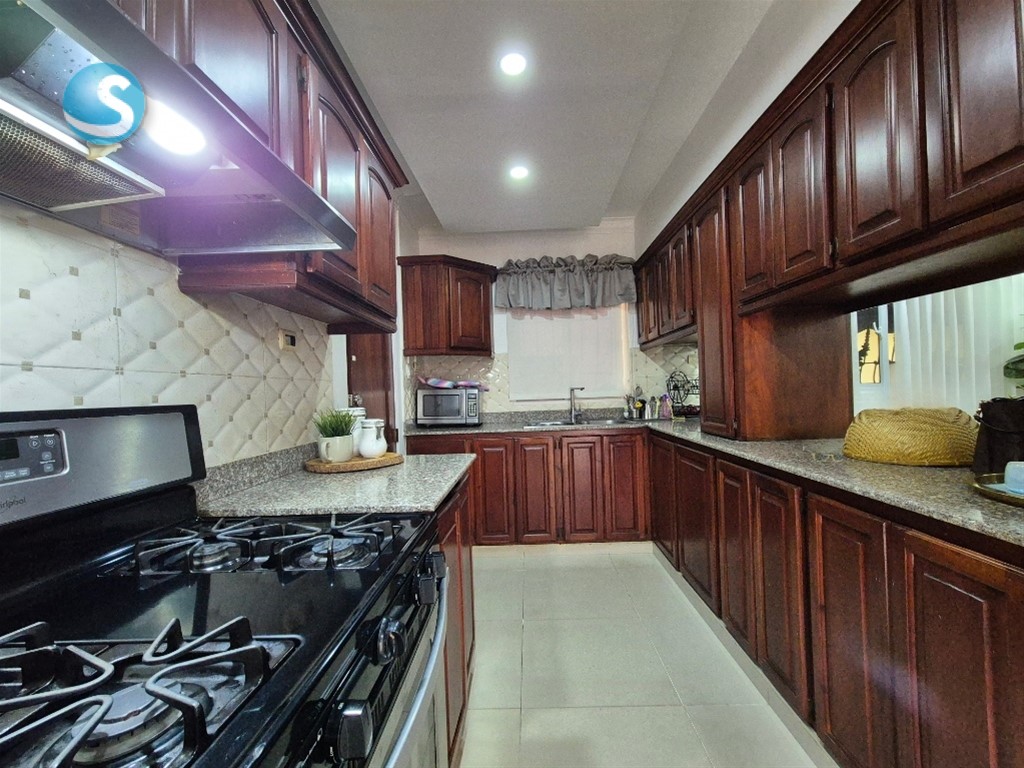- Cocina en caoba y tope de granito, con desayunador