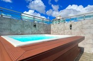 Area social con gimnasio y terraza con jacuzzi