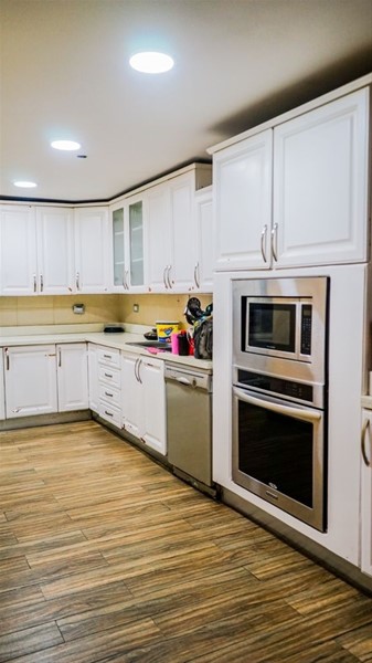 • Cocina Abierta Moderna con Tope de Granito y Madera Preciosa