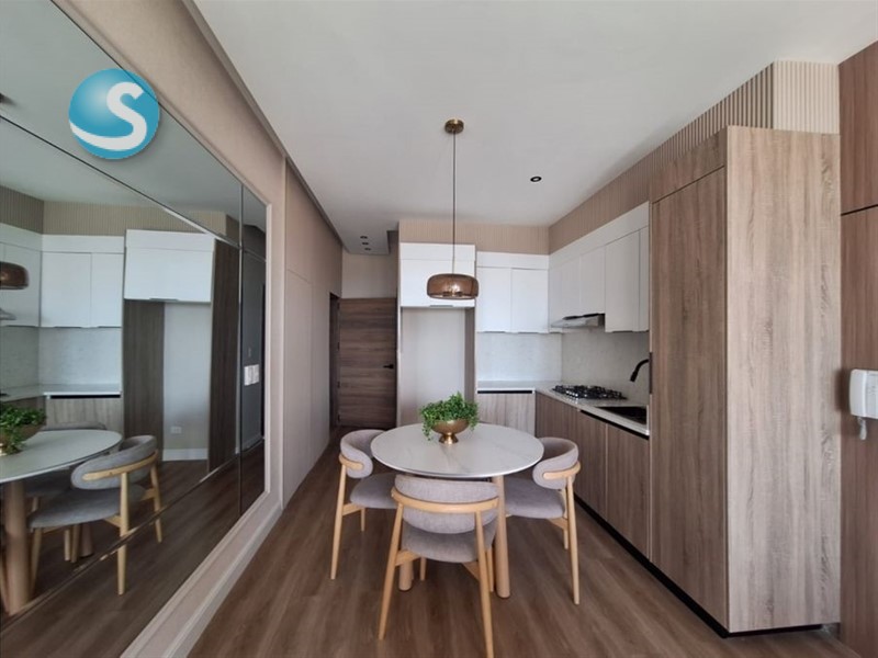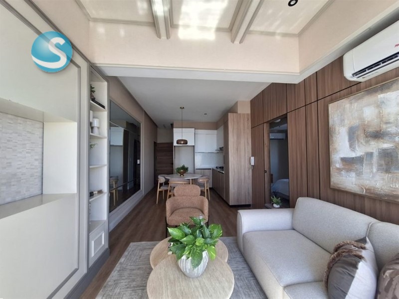 Cuenta con un balcón con vista al mar, sala y comedor integrados, cocina totalmente equipada, 1 habitación amplia con walk-in closet, 2 baños completos, área de lavado y 1 parqueo techado, ofreciendo funcionalidad y comodidad en cada detalle.