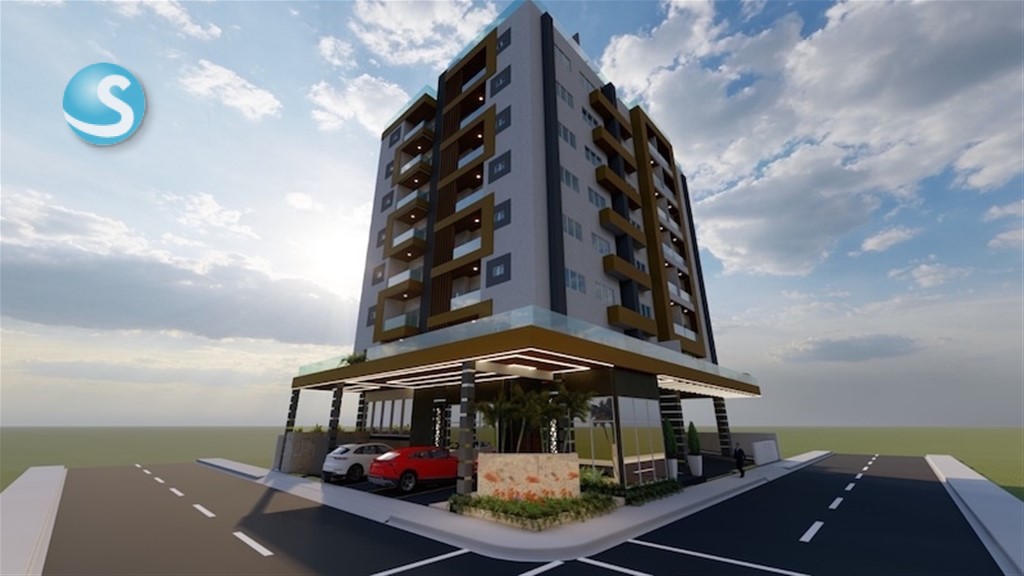 Edificio de solo 8 niveles próximo a la Universidad Autónoma de Santo Domingo (UASD) y al Malecón de Santo Domingo.