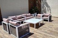 Terraza y amplios espacios alrededor de la piscina