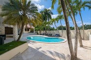 Piscina y jacuzzi rodeados de jardines tropicales