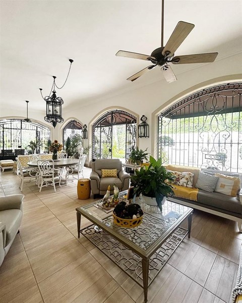 Las áreas sociales fluyen hacia una amplia terraza tipo galería y una terraza exterior techada que conecta directamente con la piscina con cascada, creando un entorno tipo resort en tu propio hogar.