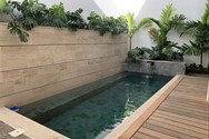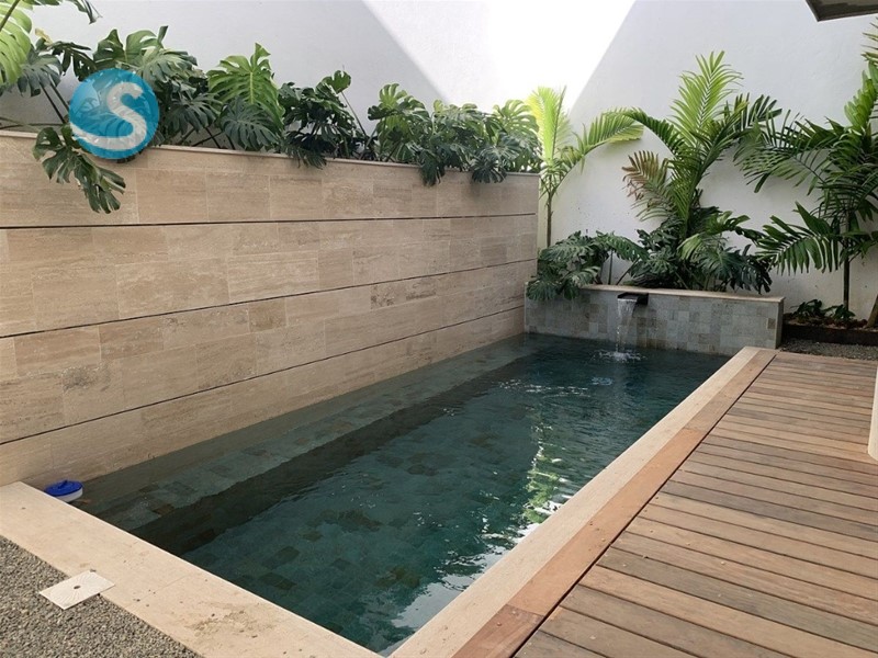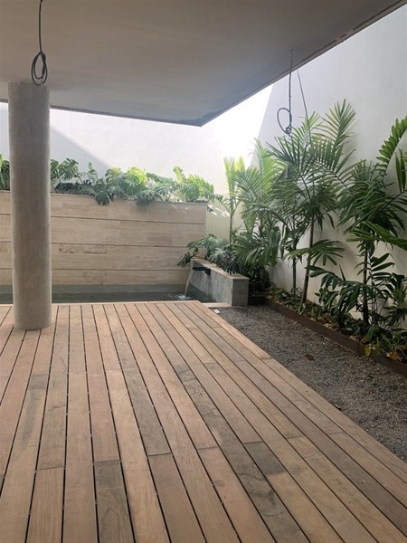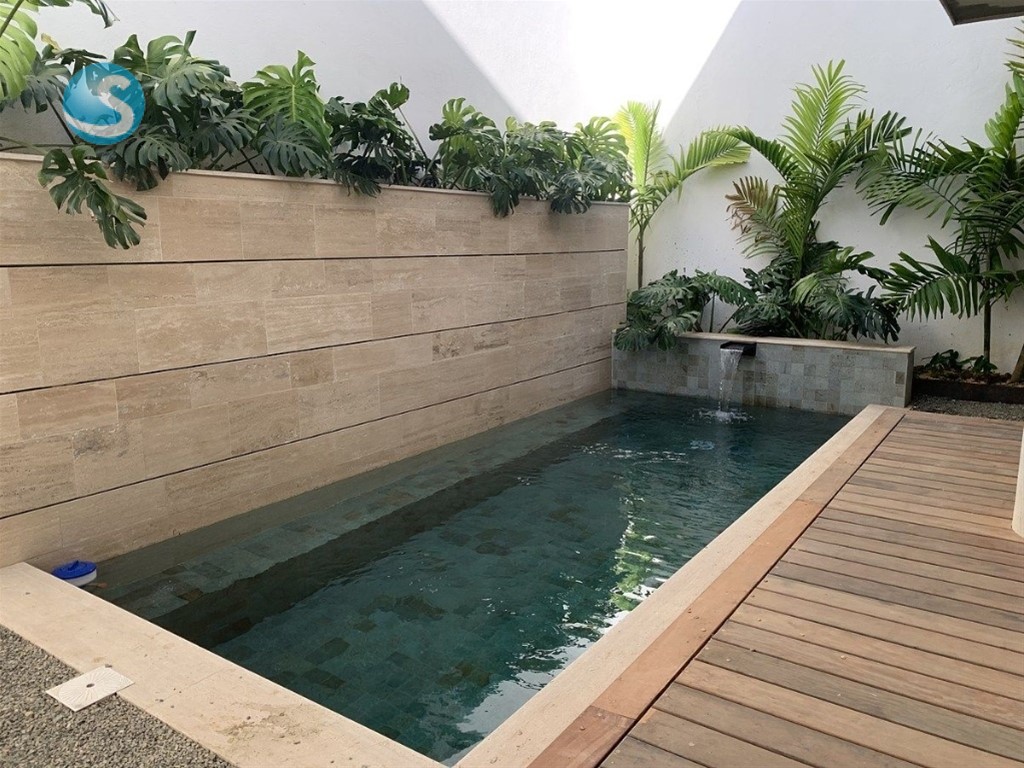 - Primer nivel: sala, comedor, cocina, terraza, estudio y baño de visita, rodeados de un oasis con piscina