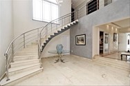 Majestuosa escalera con piso en mármol y madera