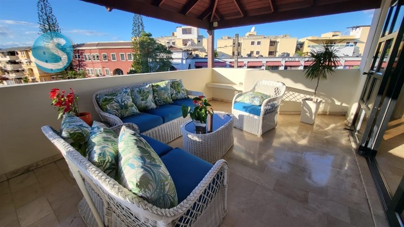 En tercer y cuarto nivel el apto de 321mts más 60mts de terraza techada, distribuido en el primer nivel: recibidor, área social conformada por amplia sala- comedor, estudio, y terraza techada, además una inmensa cocina en madera de caoba, baño de visita, y cuarto de servicio con su baño. En el segundo nivel del apto: family room, 4 habitaciones, 3 baños y otro medio baño. Se puede transformar el apto en más áreas de oficina si lo ameritara.