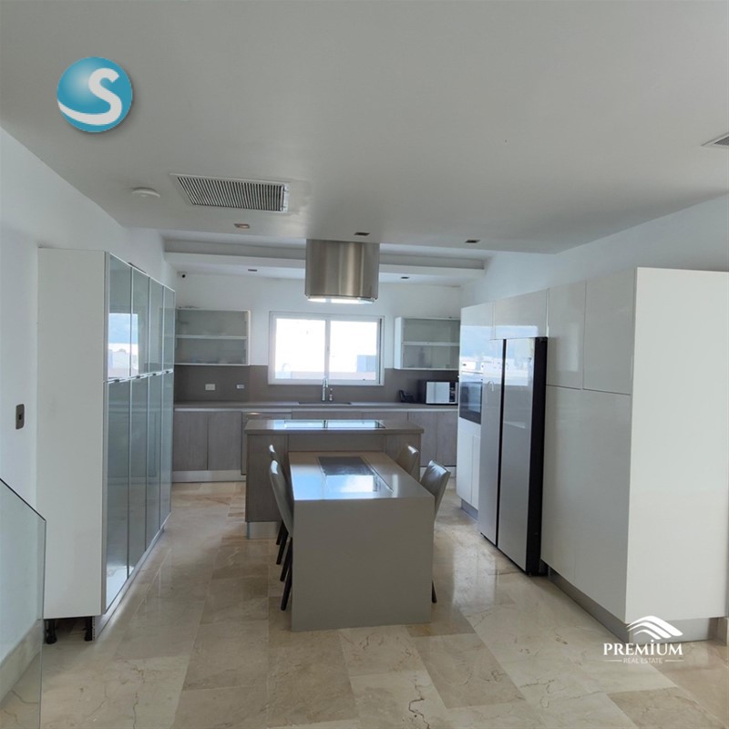 Los Cacicazgos Penthouse exclusivo de 460 metros 1er Nivel 2 habitaciones con sus baños y walking closets Estudio Impresionante sala con cristales de piso a techo Comedor súper amplio Cocina con Isla y comedor incluido, equipada con electrodomésticos Smeg (Estufa empotrada, Extractor, Horno y Lavaplatos). Cocina caliente Cuarto de servicio Baño para visitas 2do Nivel Habitación principal espaciosa con walking closet, baño y balcón. Family con bar incluido Amplia terraza El ascensor llega directo al segundo nivel. 3er nivel Amplia terraza destechada Habitación de huéspedes con su baño Espacio para gimnasio equipado con bocinas Espacio para sauna si así lo desean y un espacio abierto con instalaciones para jacuzzi. Sistema de bocinas Sonos en todo el Penthouse. Área de cámaras y controles. Sistema de aire central en primer y segundo nivel. Pisos en mármol 3 parqueos 2 amplios lockers Torre cuenta con: Ascensor Lobby Área de chóferes Seguridad Precio de venta: US$680,000 Mantenimiento: RD$20,000