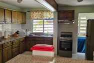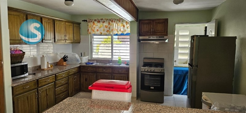- Cocina con desayunador y gabinetes de pino tratado (Nevera y frezeer incluidos)