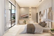 Its contemporary architecture blends clean lines, noble materials, and expansive glass windows that seamlessly connect natural light with the tropical surroundings, creating harmonious and serene living spaces.