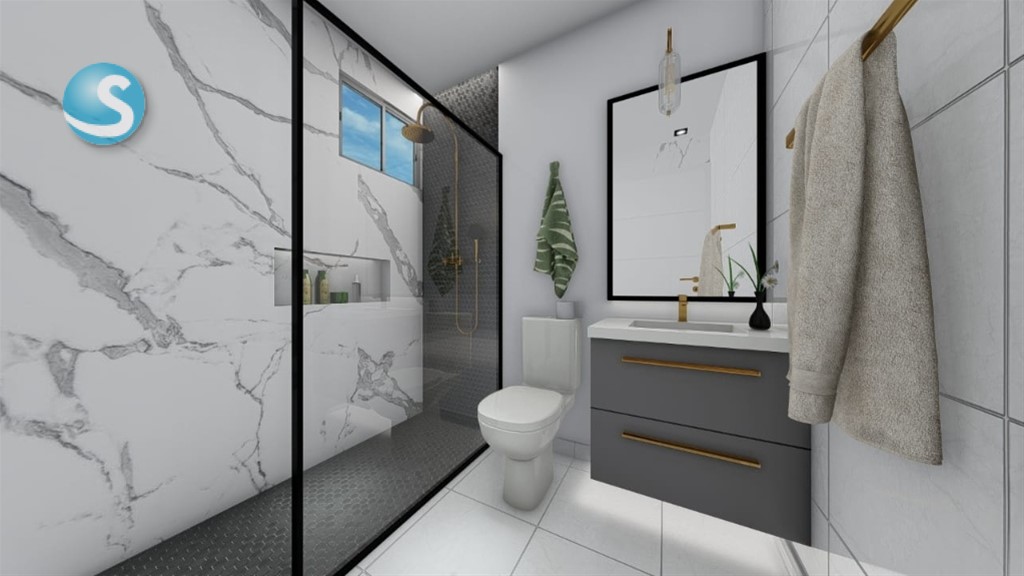 Terminaciones premium: pisos de porcelanato, topes de granito, gabinetes en melamina y puertas de madera sólida