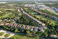 A clubhouse with pools, restaurants, and sports areas for tennis, soccer, and padel.