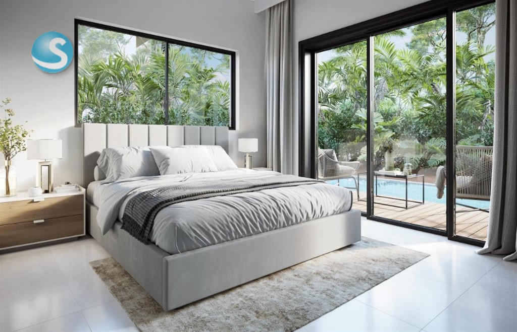 Designed for both enjoyment and investment, the community offers a strong amenity package: shared pools, padel courts, beach shuttle, smart homes, hotel-style management, co-working, gym, bar & restaurant, gazebos and solarium, pet park, play areas, a commercial plaza, eco trails and a community garden, plus private security.